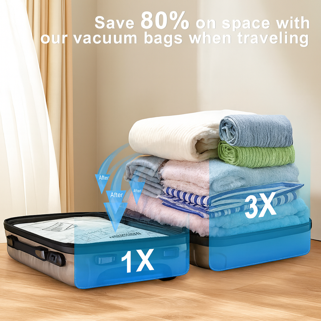 Experience the ultimate travel convenience with our compact vacuum compressor — pack faster, travel lighter, and stay effortlessly organized anywhere you go.